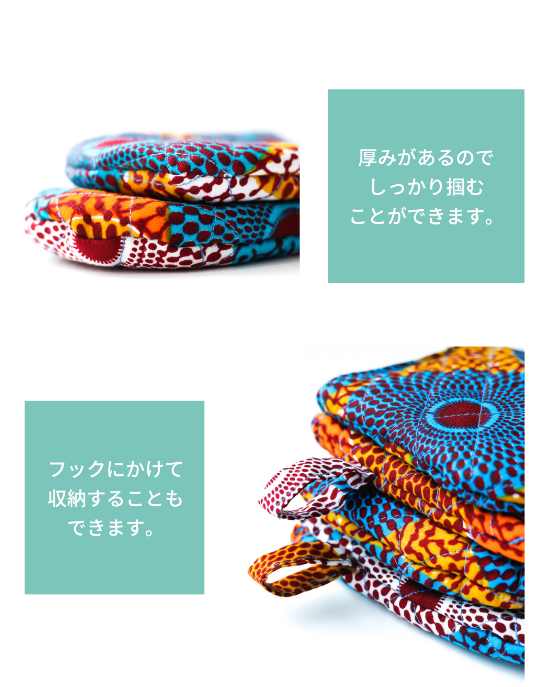キコンパクトな手袋型のキッチンミトンで、熱いお鍋も楽々もつことができます。