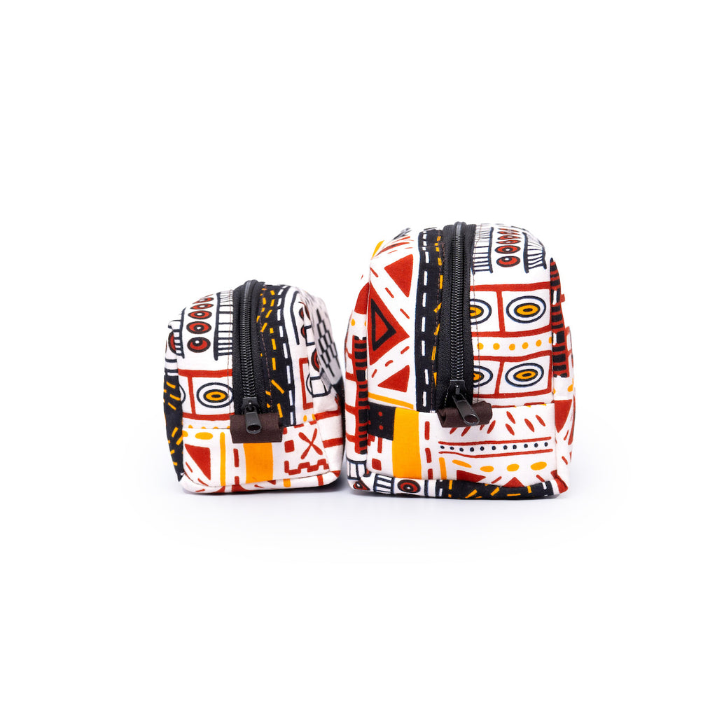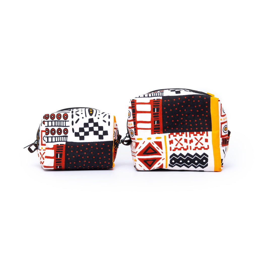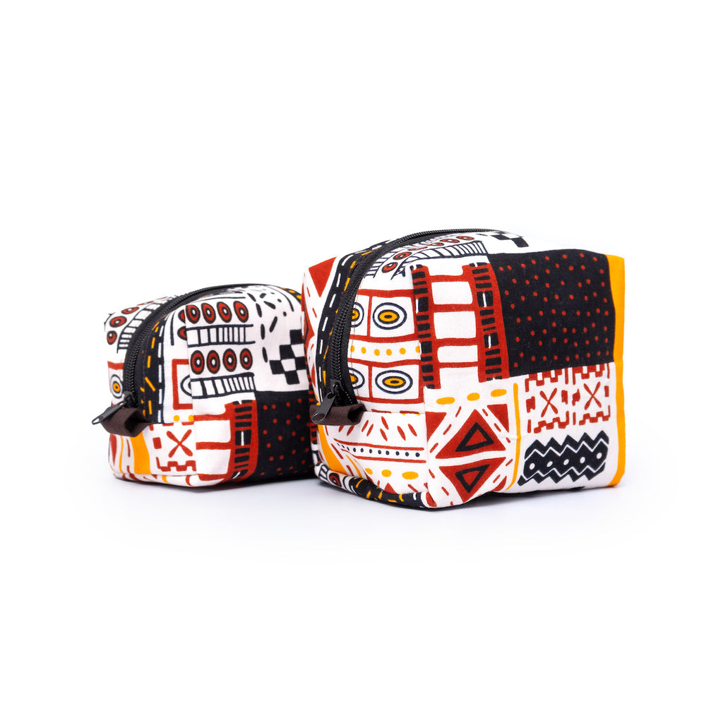 アフリカンプリントを使用した、ボックス型のポーチ。