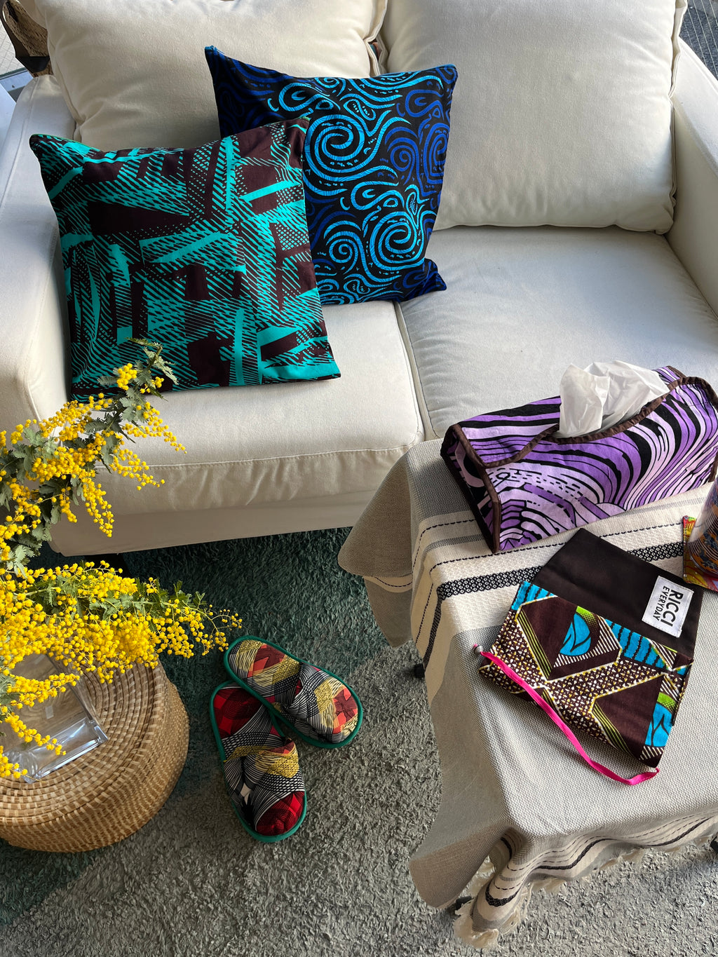 アフリカンプリントを使用したモバイルスリッパ。