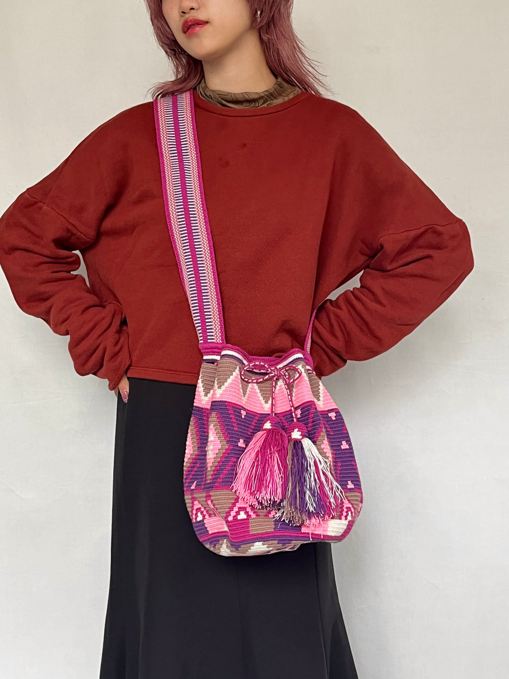モチーラは、ワユー族の女性が技術を代々継承し、かぎ針編みによって一つひとつ手編みで作られるバッグです。