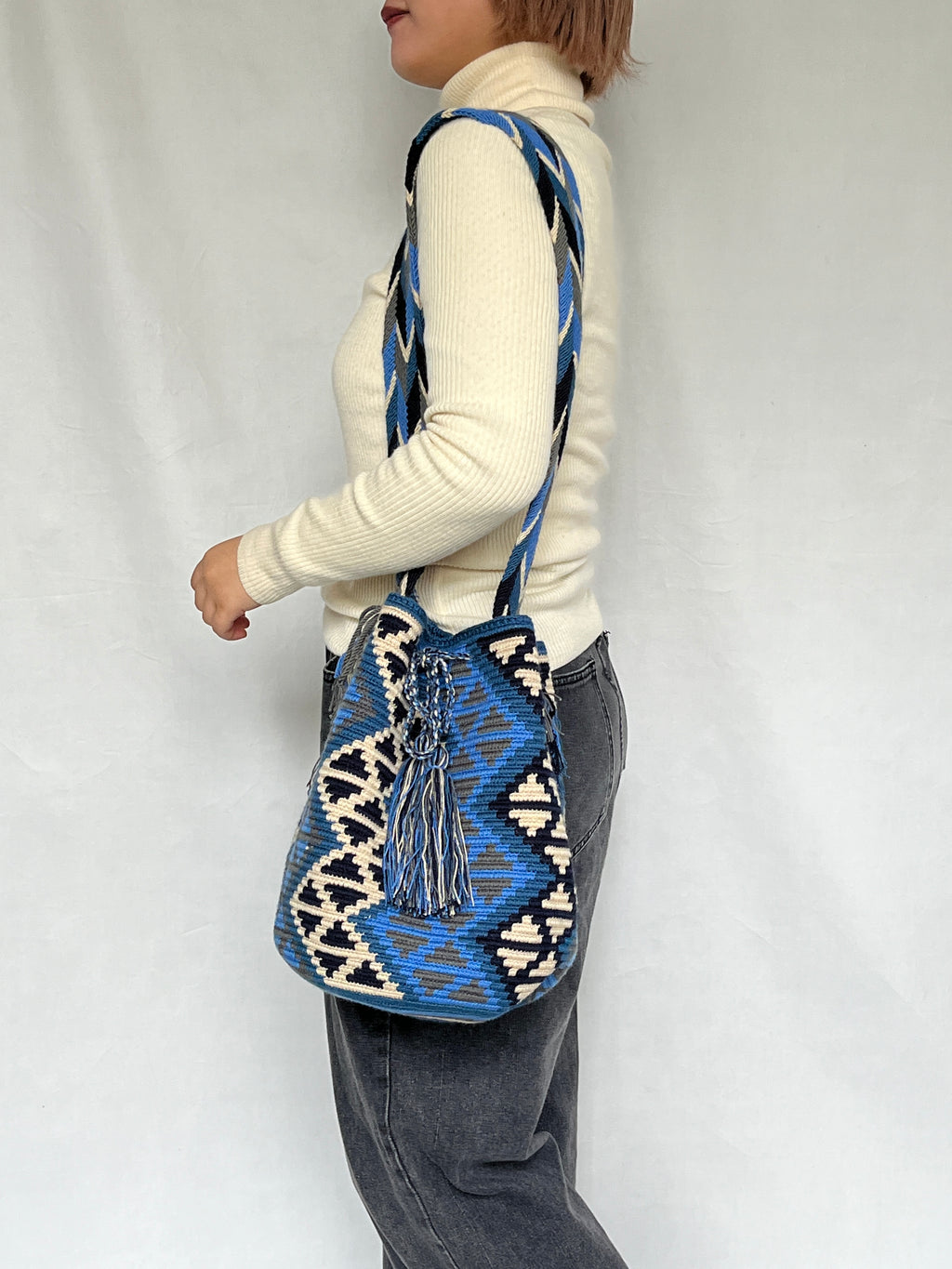 ・2本どり編み(ドス・エブラス)のモチーラの場合、最初は持ち手が短く感じることがございますが、これはものを入れたときに伸びることを想定して作られているためです。使用する際には、使いやすい長さになりますので心配ございません。