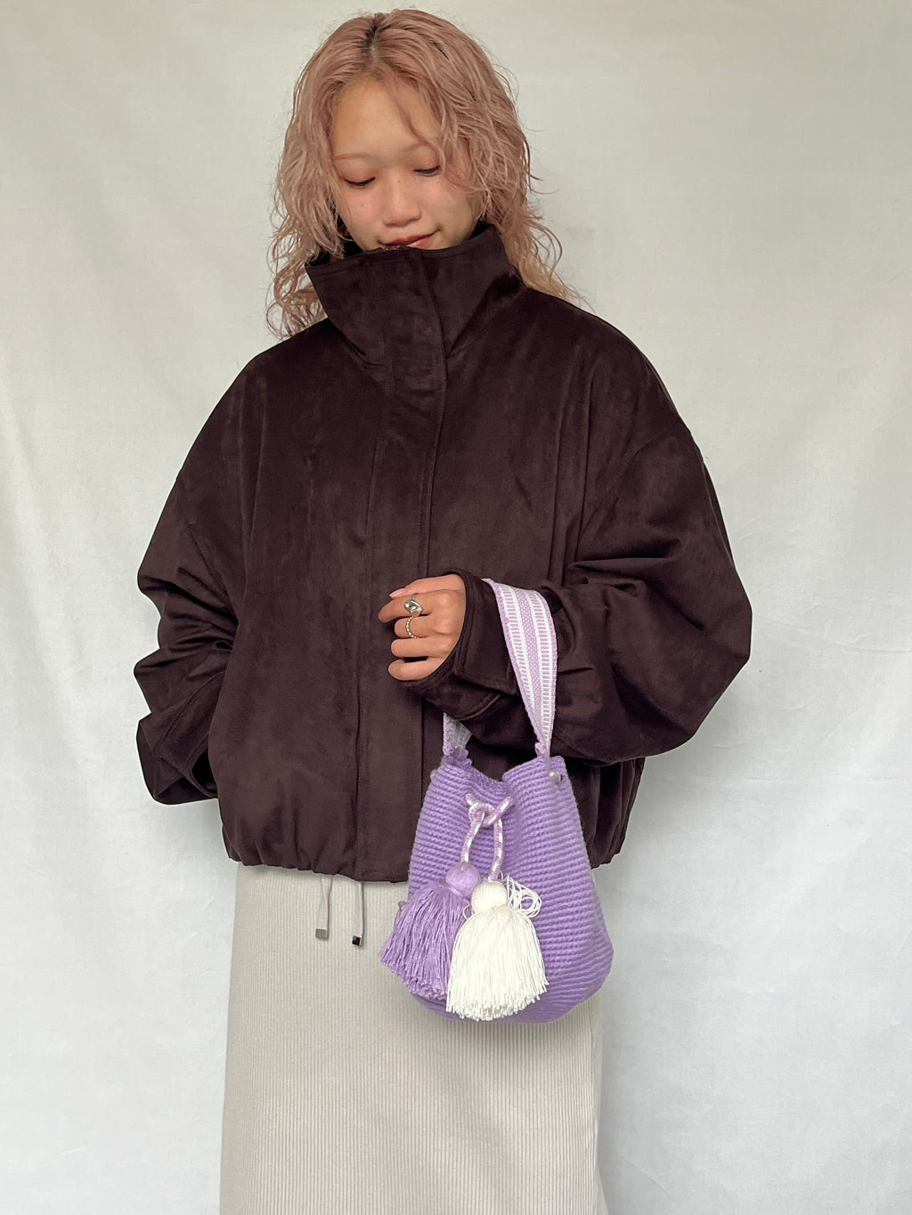 2本どりで編まれたモチーラは、ざっくりとした編地でカジュアルな雰囲気が特徴です。